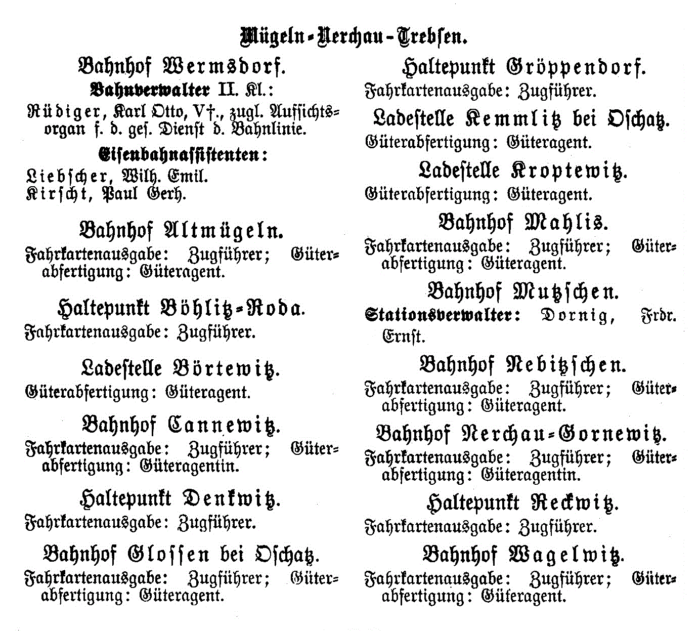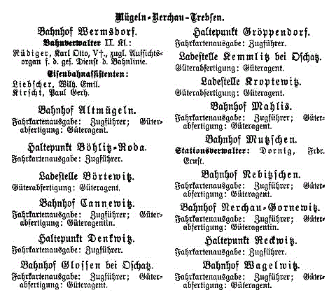Betriebsstellen, die bis 1923 der Bahnverwalterei Wermsdorf unterstanden.