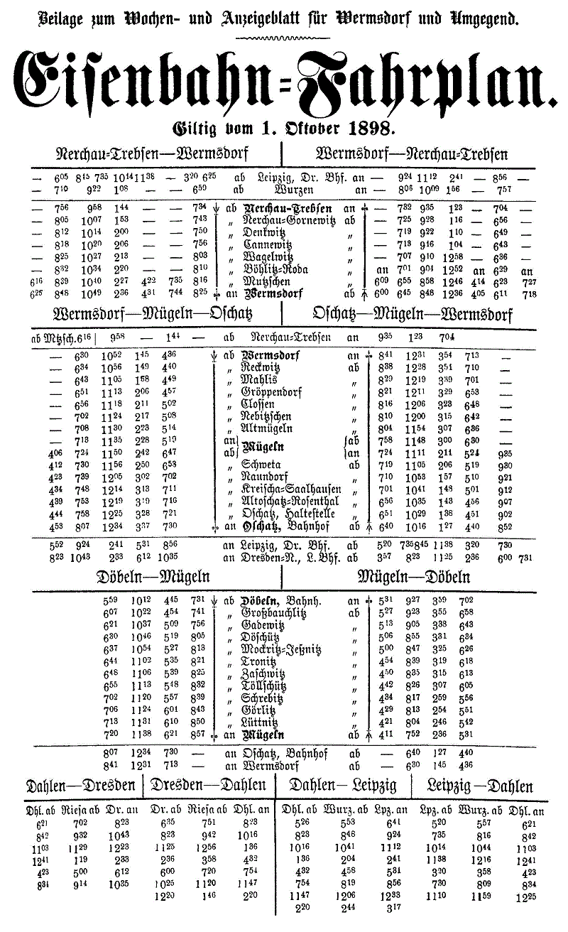 Vom gleichen Tage an ist auch der Streckenabschnitt Nebitzschen – Nerchau-Trebsen von der Bahnverwalterei Mügeln mit zu verwalten.