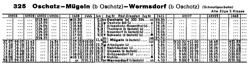 Von unserer Bahnstrecke bleiben drei Kilometer übrig, die nach Einstellung des Personenverkehrs zwischen Oschatz und Mügeln Teil der "Kaolinbahn" Oschatz – Mügeln – Kemmlitz werden.