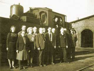 Auch nach dem Kriege nutzte man die Lokomotiven gern als Hintergrundstaffage für Gruppenfotos.
