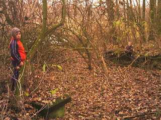 Im Original hat dichter Wildwuchs alles überwuchert, damit sind die Reste der Mühlgrabenbrücke kein geeignetes Ziel für einen Sonntagsspaziergang.