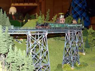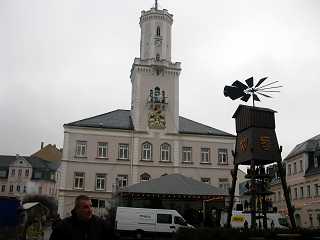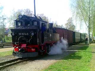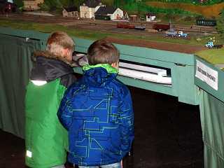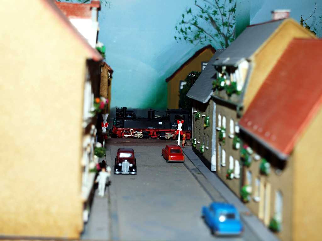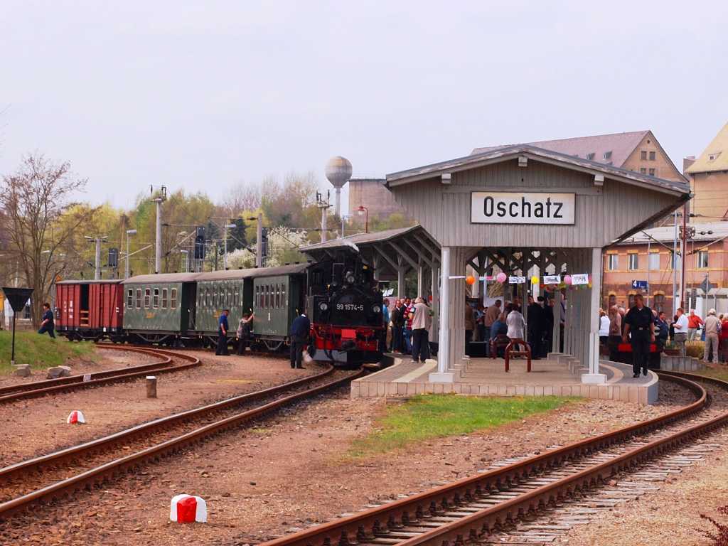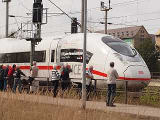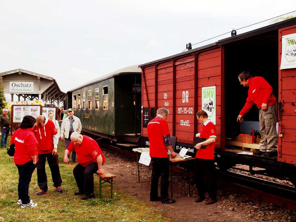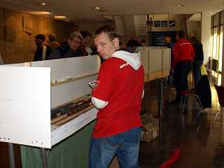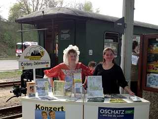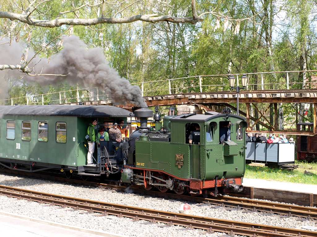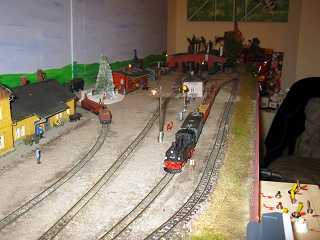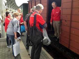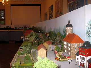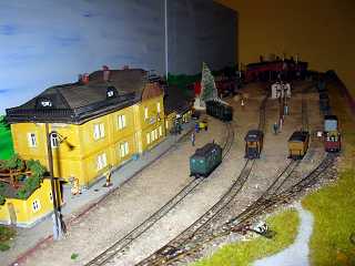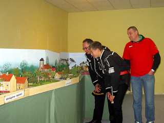 175 Jahre Leipzig – Dresdner EisenbahnAm 07. April war Start der Festwoche "175 Jahre erste deutsche Ferneisenbahn Leipzig – Dresden". Genau wie vor 175 Jahren fuhr ein Sonderzug die rund 120 Kilometer lange Strecke in dreieinhalb Stunden. Nur fuhr diesmal ein ICE 3 der DBAG; weil er aber die Strecke viel schneller als der Zug von 1839 zurückgelegt hätte, fanden in Wurzen, Oschatz und Riesa Bahnhofsfeste statt. Natürlich war bei den Feierlichkeiten auch die Sächsische Modellbahner-Vereinigung dabei und wurde durch regionale Vereine vertreten. In Oschatz waren wir für die Präsentation zuständig. In einem Schmalspur-GGw der Döllnitzbahn hatten wir ein Stück H0e-Anlage aufgebaut, viel Beachtung fanden auch unsere Foto-Wände. ![]() Mittags fuhren wir per Döllnitzbahn-Dampf-Sonderzug nach Oschatz. In den "Stückgut-Wagen" hatten wir bereits am Sonnabend unsere kleine Ausstellung verladen. ![]() …wurde in Vereins-typischer Arbeitsteilung am Oschatzer Schmalspur-Bahnsteig eine kleine Präsentation mit Mini-Modellbahn-Ausstellung aufgebaut. ![]() …dem "Star des Tages", dem neuen ICE 3 der DBAG erging es auch nicht besser, dafür defilierten all' seine Ehrenfahrgäste einschließlich Bahnchef Grube direkt an unserer Präsentation vorbei. ![]() DBAG-Vorstand Grube und Minister Morlok zeigten, was bei der Bahn verboten ist: Auf Schienenköpfe treten! OB Kretschmar, Landrat Czupalla und Döllnitzbahn-Chef Neidhardt (hinten v.l.) schwiegen höflich. Ostern mit IK-TreffenÜber Ostern war die IK № 54 zu Gast bei der Döllnitzbahn. Ostersonntag und -montag pendelte sie zwischen Mügeln und Glossen. Auch unsere Modellbahnanlage war an beiden Tagen für Besucher geöffnet, besonders am Sonntag konnten wir zahlreiche Besucher begrüßen. Ausstellung anlässlich des Mügelner AltstadtfestesAm 16. und 17. August fand in Mügeln das traditionelle Altstadtfest statt. Wir beteiligten uns erstmals mit einer Modelleisenbahnausstellung in den Räumlichkeiten des ehemaligen Schlecker-Marktes. Aufgebaut hatten wir die "lange" Strecke vom Horstsee bis zum Einfahrtssignal des Bahnhofes Mügeln, somit alle neugestalteten Segmente, ergänzt um Manfreds Privat-Teile. Unsere Ausstellung war an beiden Tagen für Besucher geöffnet, besonders am Sonnabend konnten wir zahlreiche Besucher begrüßen. A bis Z: Modellbahn in Gera und beim Lichtelfest in SchneebergErstmals in der Vereinsgeschichte brachte das zweite Adventswochenende ein Doppelereignis: Wir bestritten zur gleichen Zeit zwei Modellbahnausstellungen. Nahezu alle aktiven Vereinsmitglieder (von A bis Z) waren unterwegs. Während Gruppe (A)dler mit dem Bahnhof Wermsdorf zu Gast in der Ausstellung des Ostthüringer Modelleisenbahnclubs Gera e.V. war, nahm Gruppe (Z)immermann mit den Anlagensegmenten Nebitzschen – Altmügeln – Mügeln am Lichtelfest in Schneeberg teil. ![]() Gruppe A: Reiseleiter nebst Assistent regelten in Gera das Leben und den Zugverkehr in und um Wermsdorf. Und das natürlich aus dem Modellbahnhimmel… ![]() …während sich das sachkundige jugendliche Publikum - wie schon gewohnt - vor allem für das Leben im Untergrund interessierte. ![]() Da das rollende Material auf zwei Gruppen aufgeteilt war, musste alles eingesetzt werden, was Räder hatte. Manche Oma war begeistert: So ein schöner alter Zug! ![]() Vor den Anlagen herrschte meist regelrechtes Gedränge, während gegen Abend hinter den Kulissen das Feierabend-Bier herbeigesehnt wurde. ![]() Ein Blick zu den Nachbarn. Truppentransport der ehemaligen GSSD (Gruppe der Sowjetischen Streitkräfte in Deutschland) mit Rätsel: Wo endet die Anlage und wo beginnt die Hintergrundkulisse? ![]() Die Ausstellung stand unter dem Motto "Schmalspurbahn im Modell". Und so war die sächsische IVK die am häufigsten zu sehende Lok. Nicht nur bei uns, sondern auch eine Nummer größer in 0e… ![]() …oder wie hier bei den Cottbuser Modellbahnfreundeen auf dem großen Stützengrüner Viadukt in H0e. ![]() Auch eine Erinnerung an die Glossener Heimat gab es zu sehen: Gesteinstransport auf drei Spurweiten in 1:45, also 0f, 0e und 0. ![]() Hier feierte Manfreds Bahnhof Mügeln seine Premiere, die Fassadenfarbe des großen Empfangsgebäudes war gerade noch rechtzeitig trocken geworden. Weihnachtsmarkt in StauchaSchlusspunkt des Ausstellungsmarathons war der Weihnachtsmarkt in Staucha. Ausstellungsort und Unterstützung durch die Gemeinde sind vorbildlich. Jedoch haben Modellbahnausstellungen anlässlich von Weihnachtsmärkten einen Haken: So mancher Zeitgenosse trinkt doch lieber ein-zwei-drei Becherchen Glühwein für rund 5,00 Euro und zeigt dem Kassierer am Eingang einen Vogel, wenn er 1,50 Euronen Eintritt berappen soll. Man muss halt Prioritäten setzen! Deutschland war angeblich mal eine Geistes-Nation, so mit Dichtern und Denkern. Davon sind offensichtlich nur die geistigen Getränke übrig geblieben… |